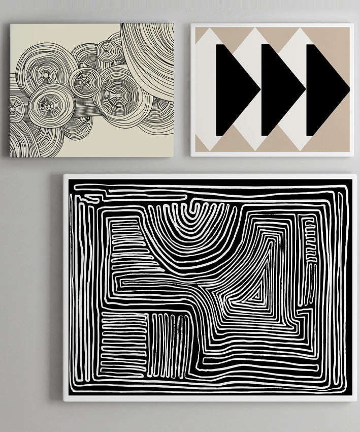 Our Abstract Gallery wall is made up of 5 bold Art Pieces.