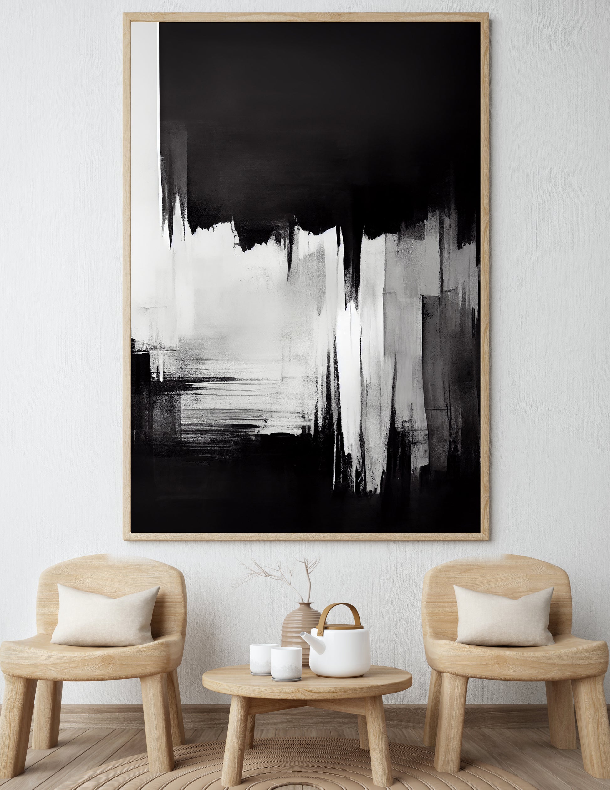 Striking black and white abstract art piece.