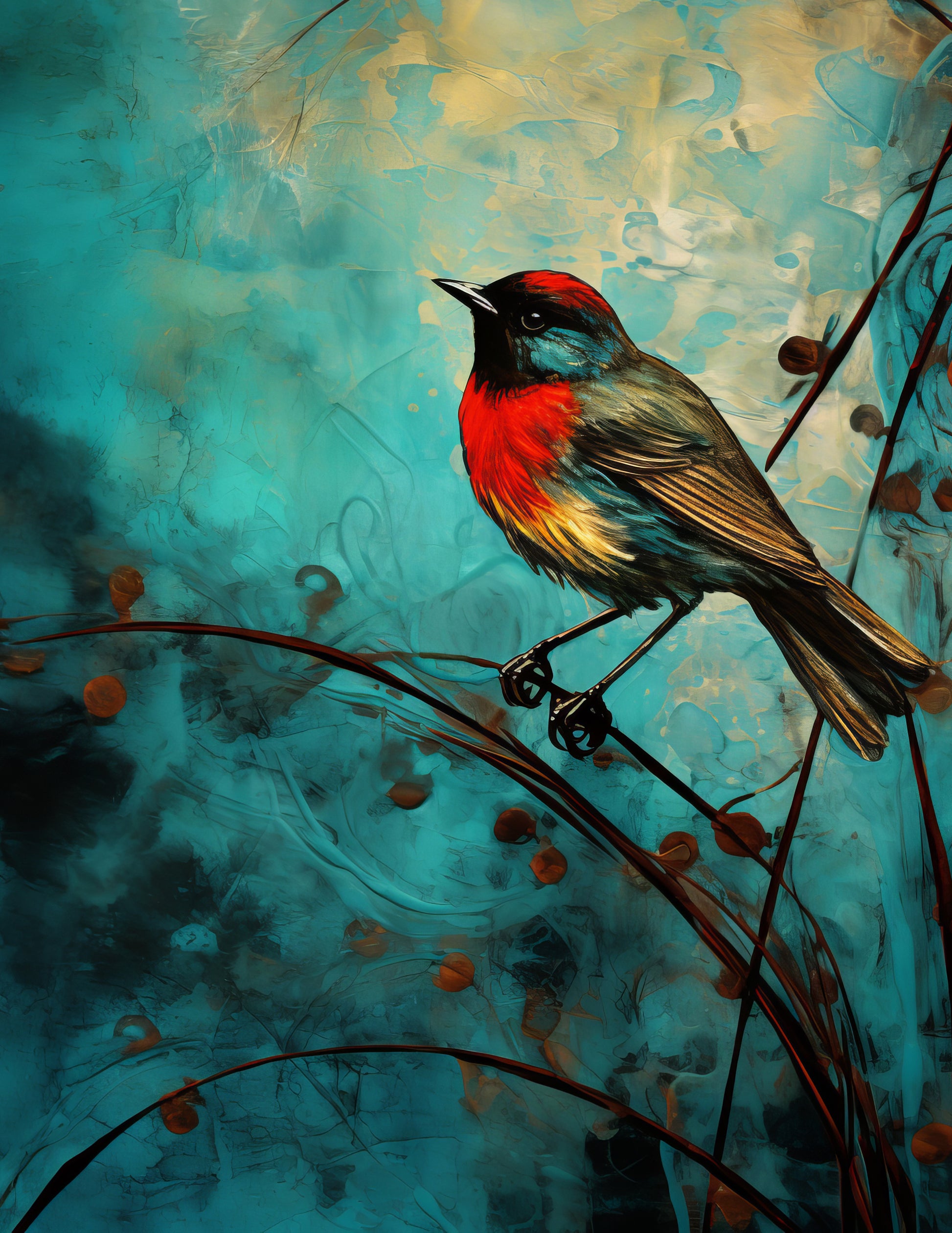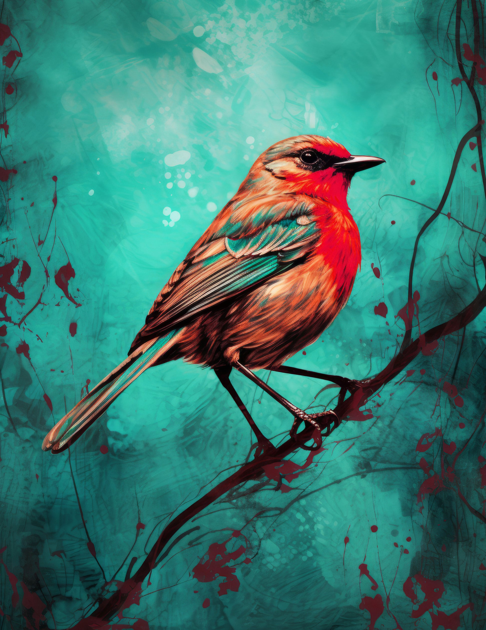This whimsical set of vintage boho prints of birds set on turquoise background is available as a stretched, block mounted canvas, framed or unframed and prepared range of sizes.