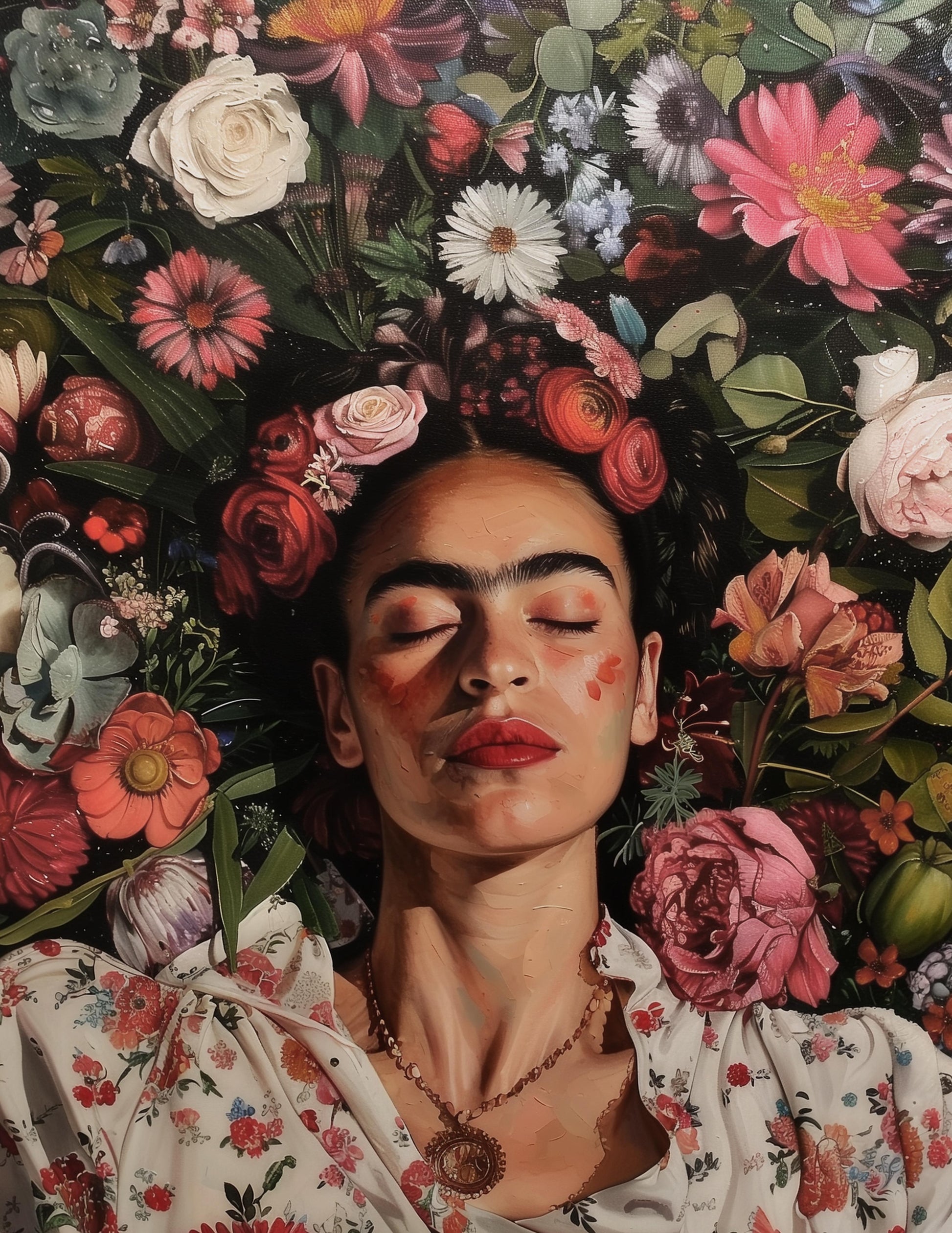 Bohemian Portrait of Frida Kahlo in a field of florals