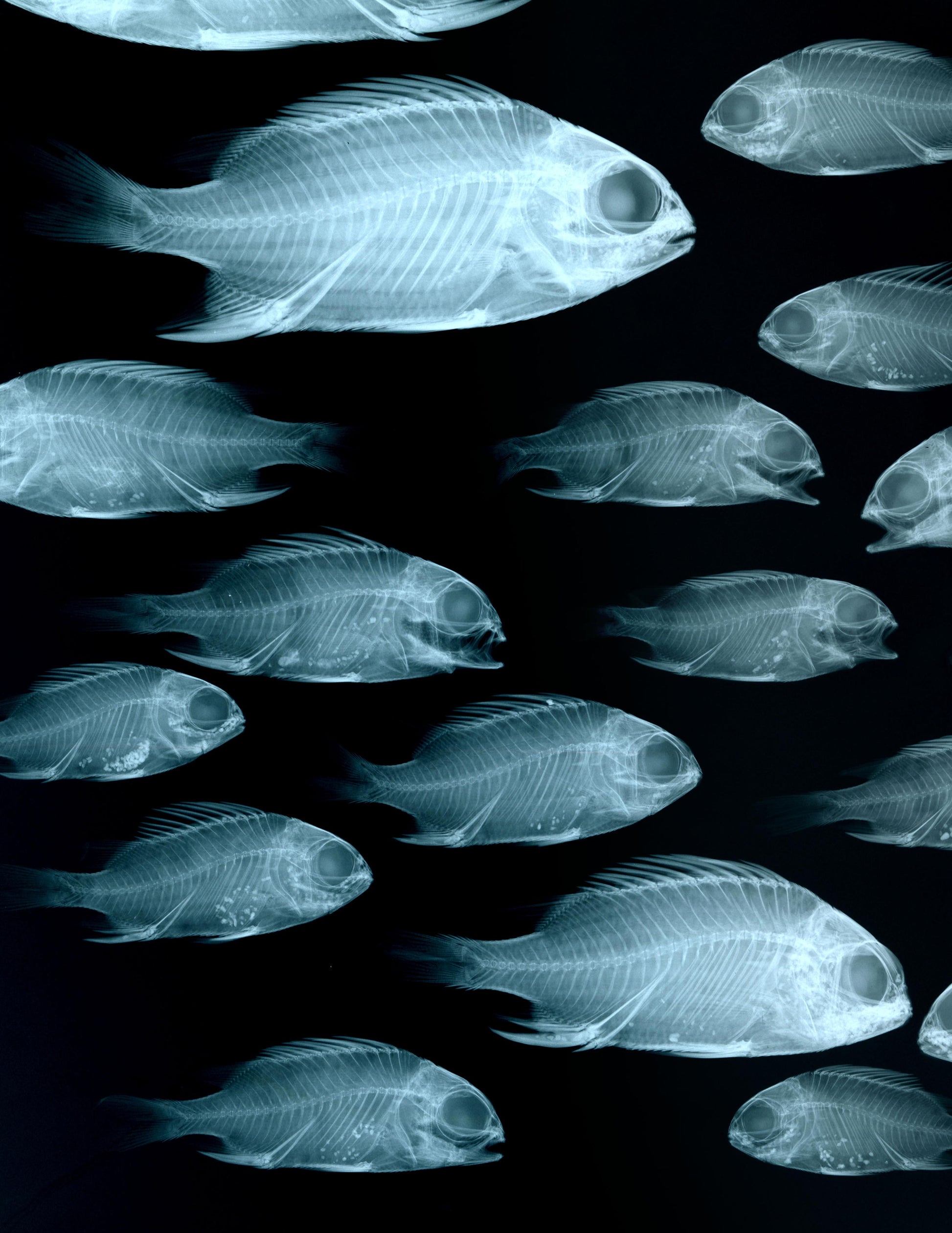 Art piece set of Fish X Rays in tones of blue