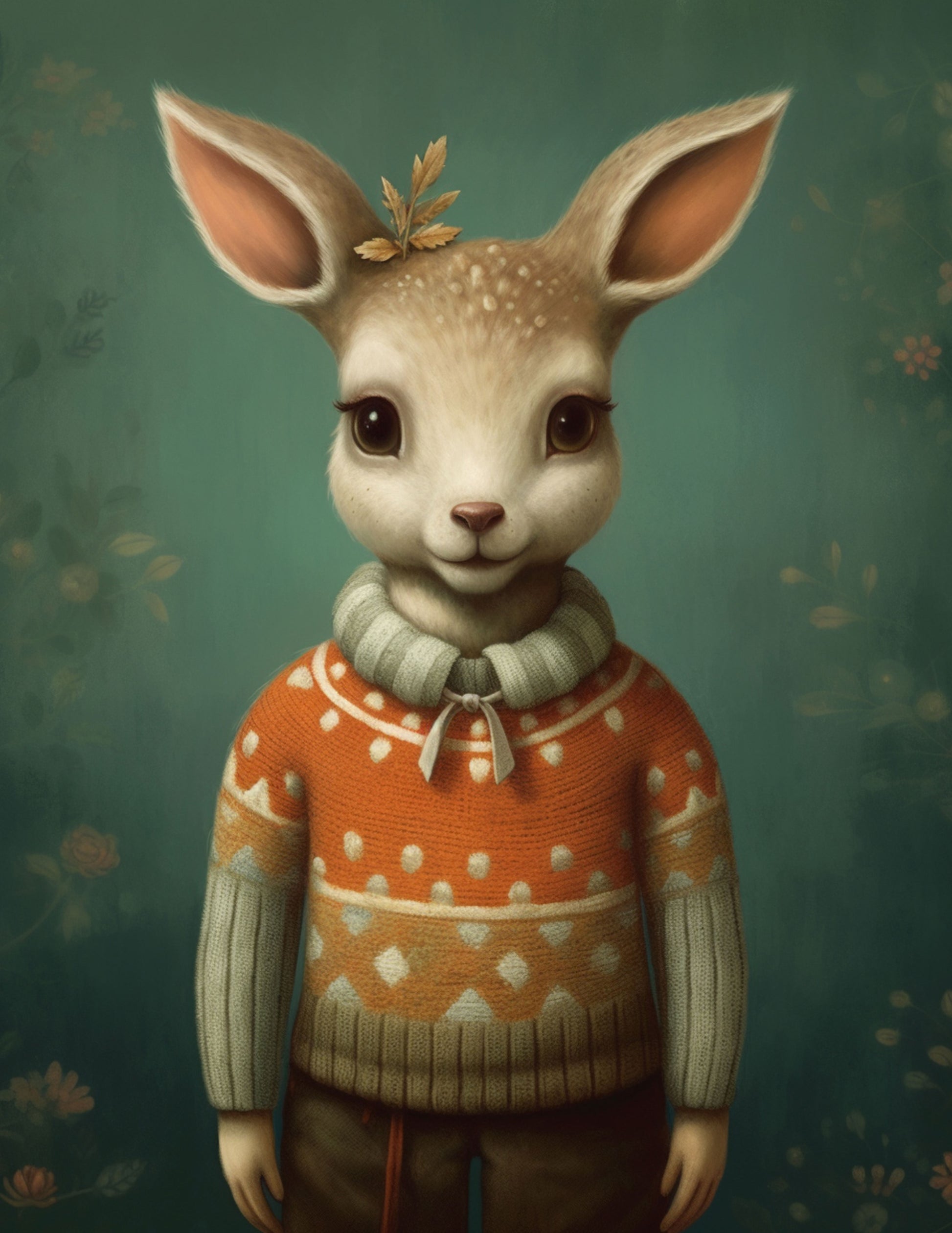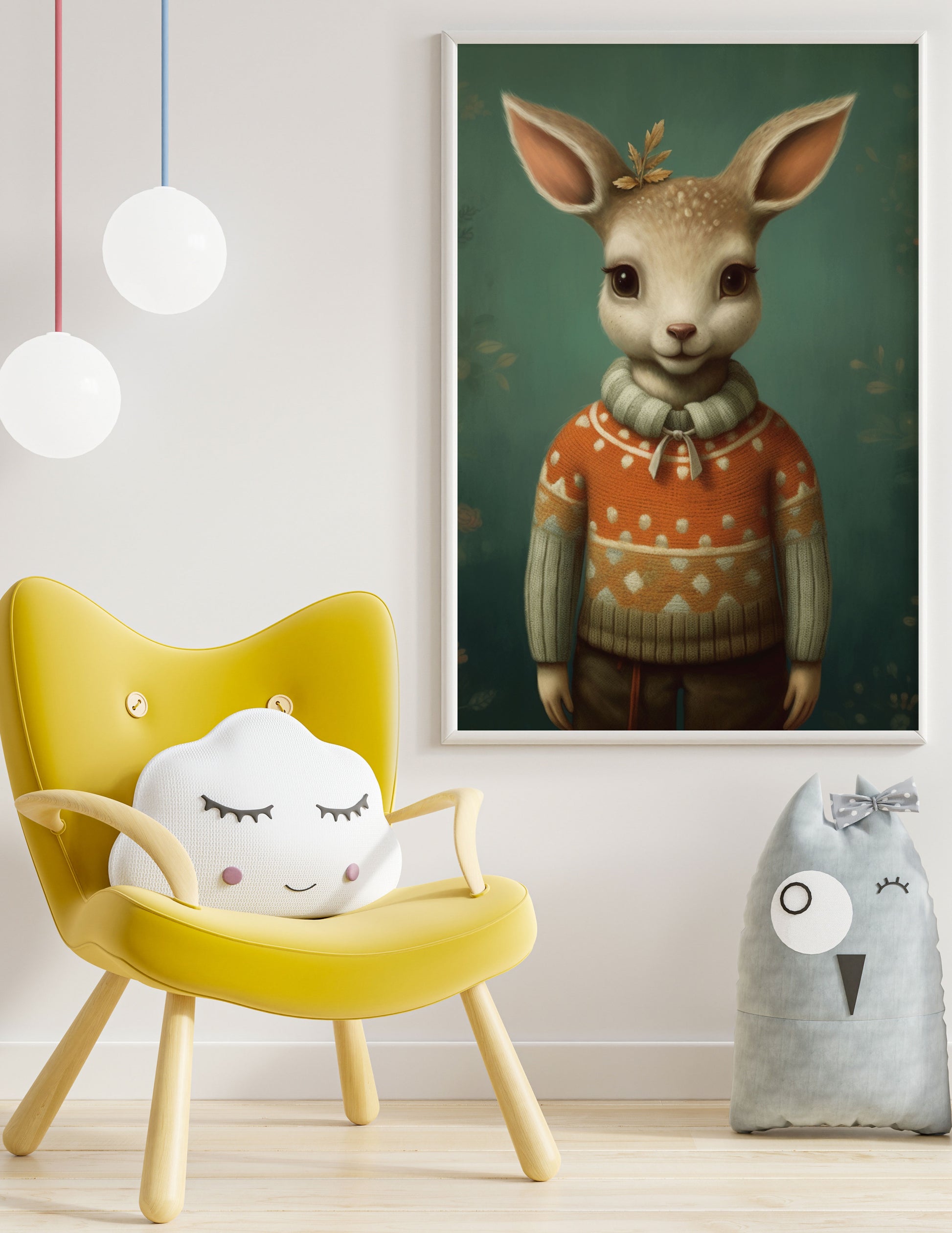 Whimsical Bohemian kiddies art piece of a cute Deer Forrest Friend