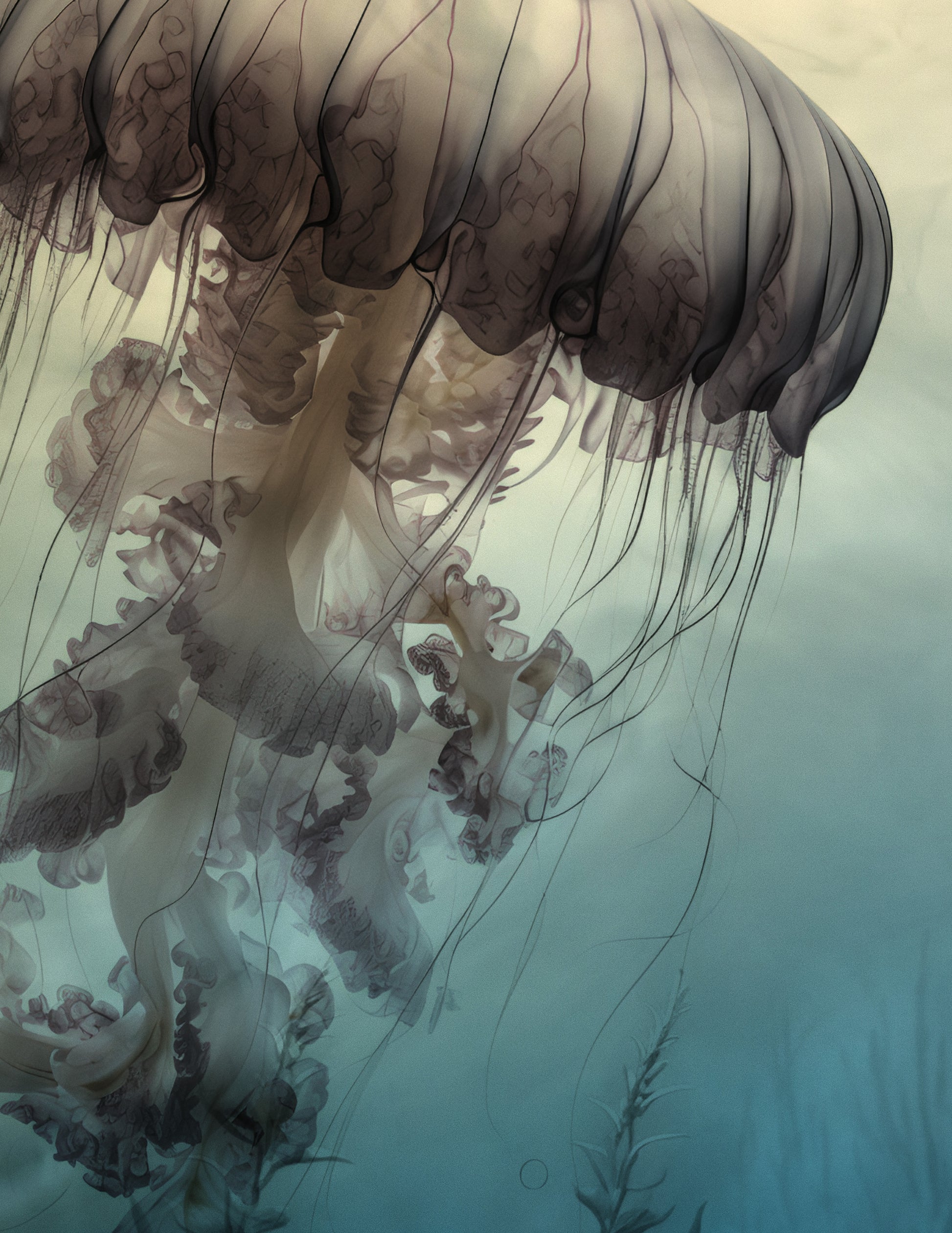 Soft tones, jelly floating through the ocean water.