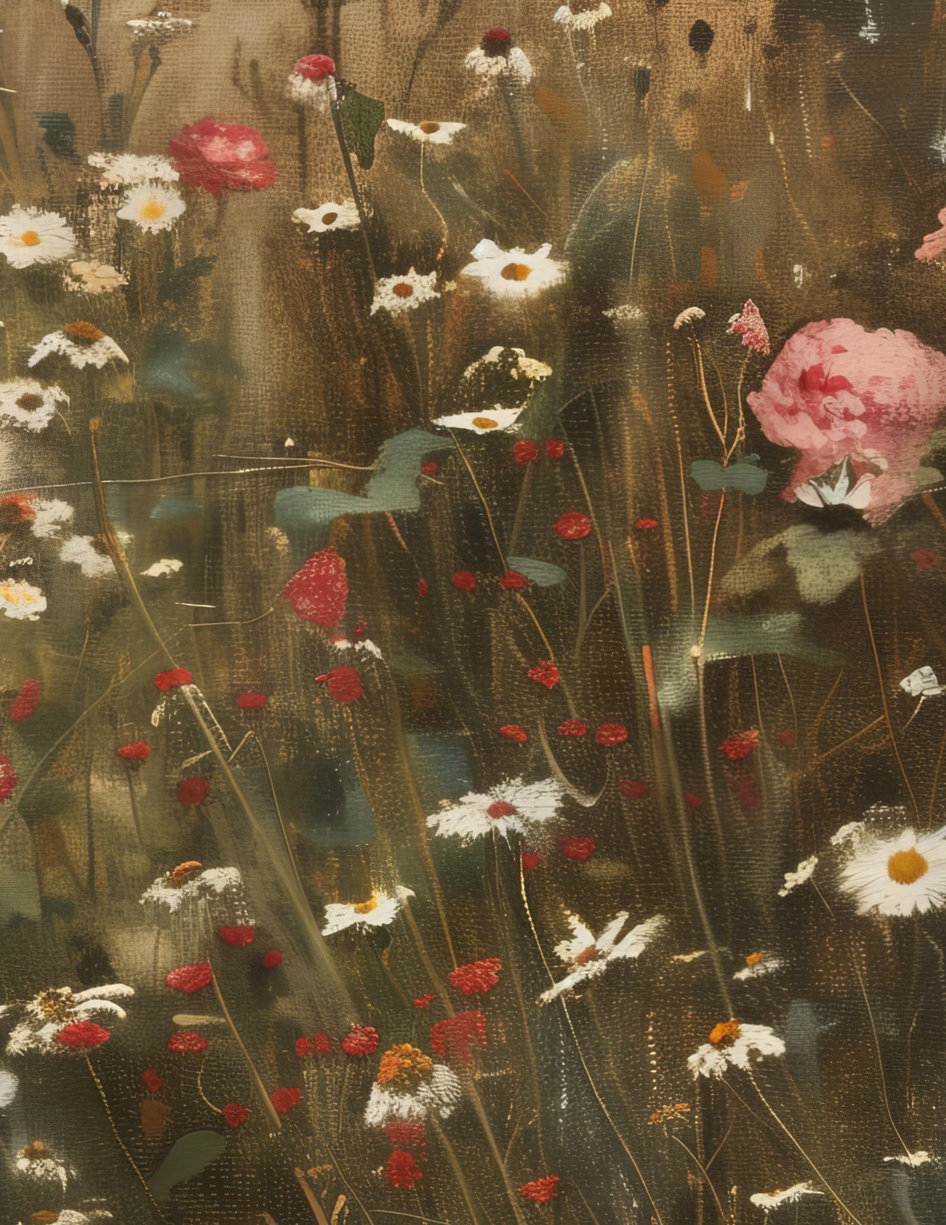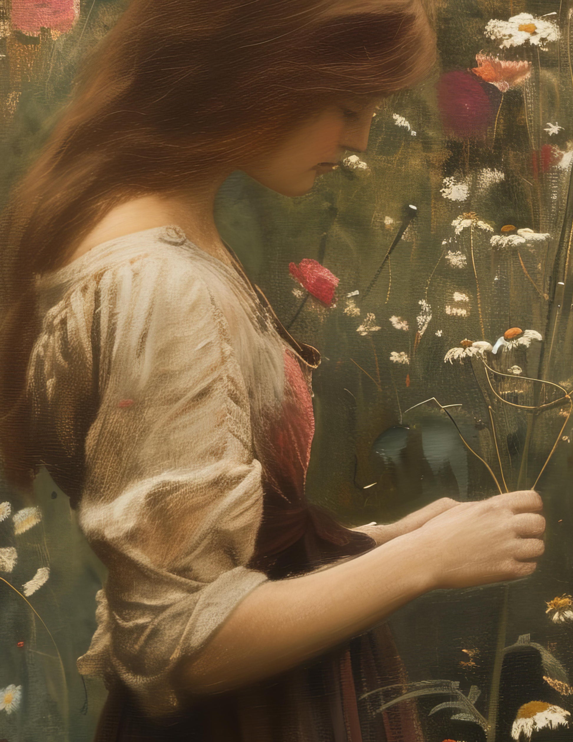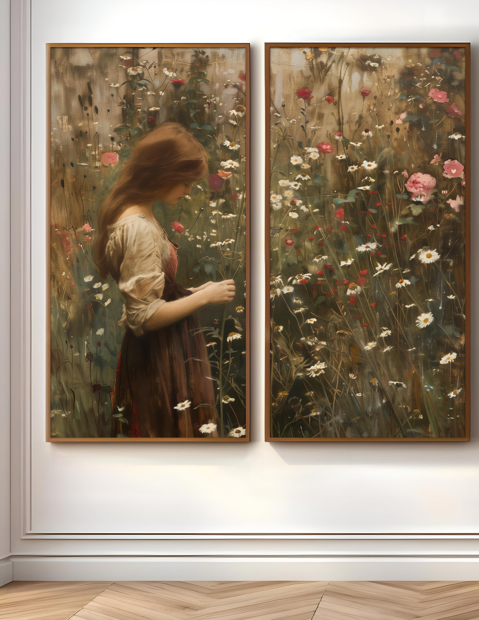 Soft vintage inspired set of 2 art pieces of woman in floral field