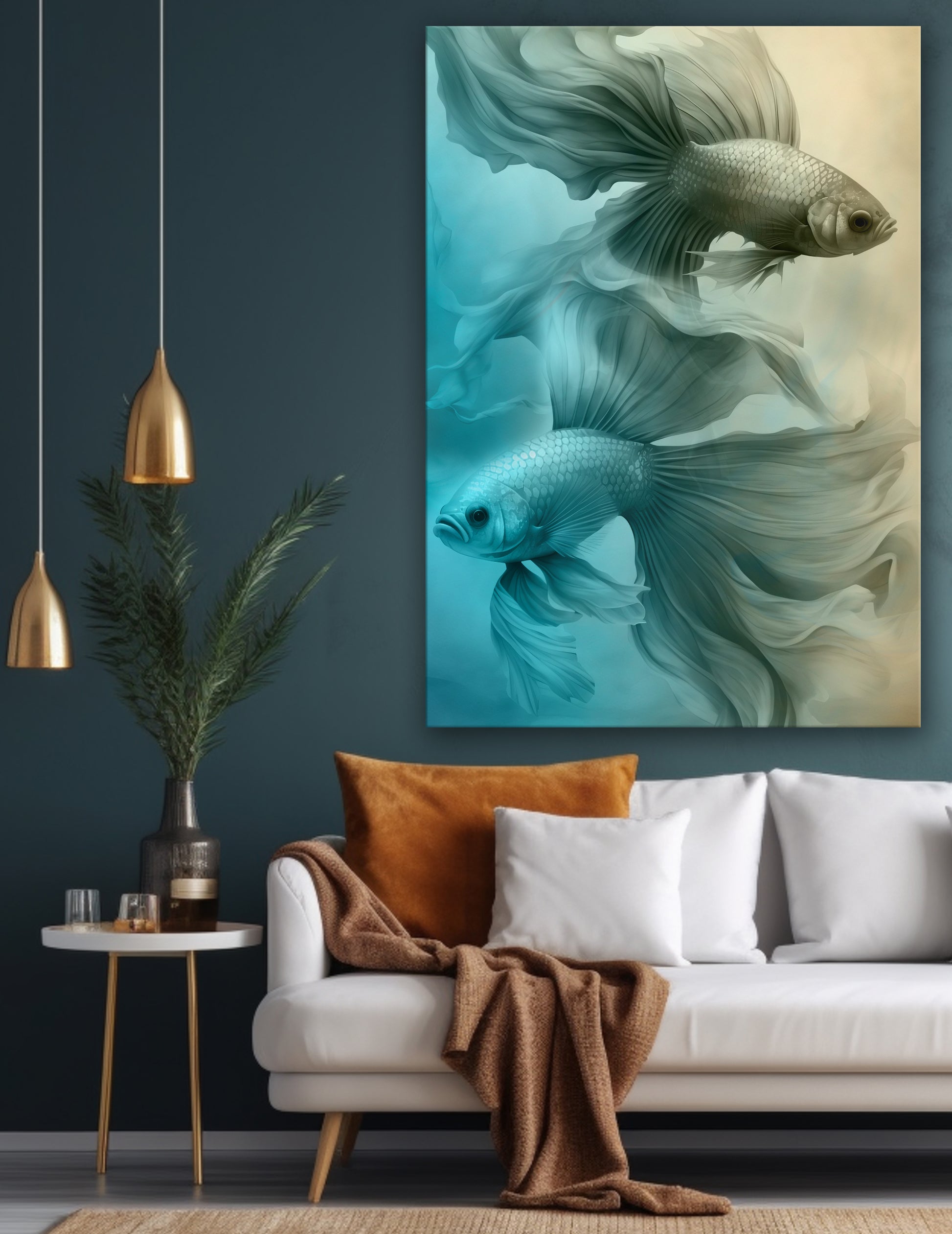 Created by Lusted & Lamb, soft Betta Fish in soft tones of gold and blues.