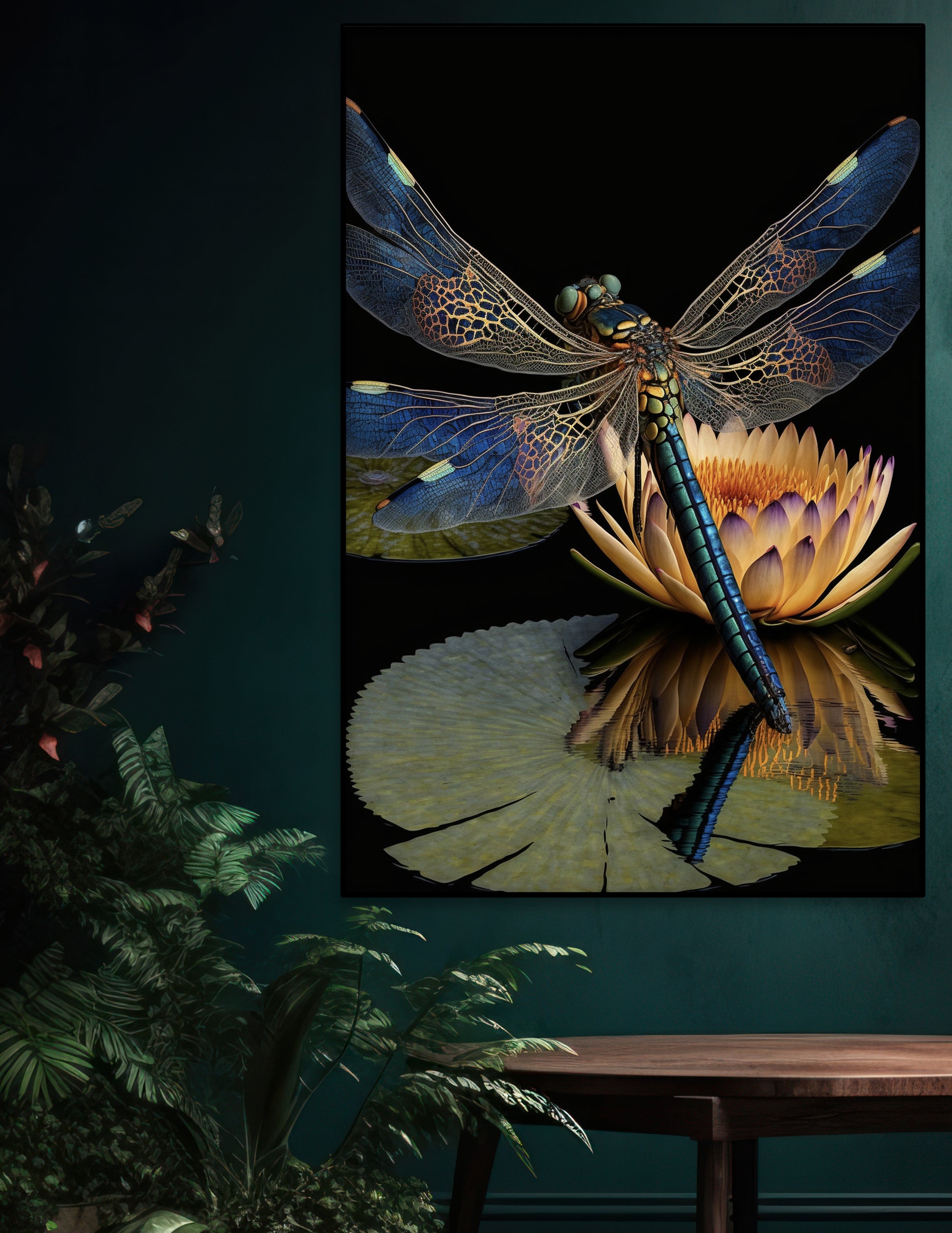 Beautiful art piece of Dragonfly on Lily Pad.
