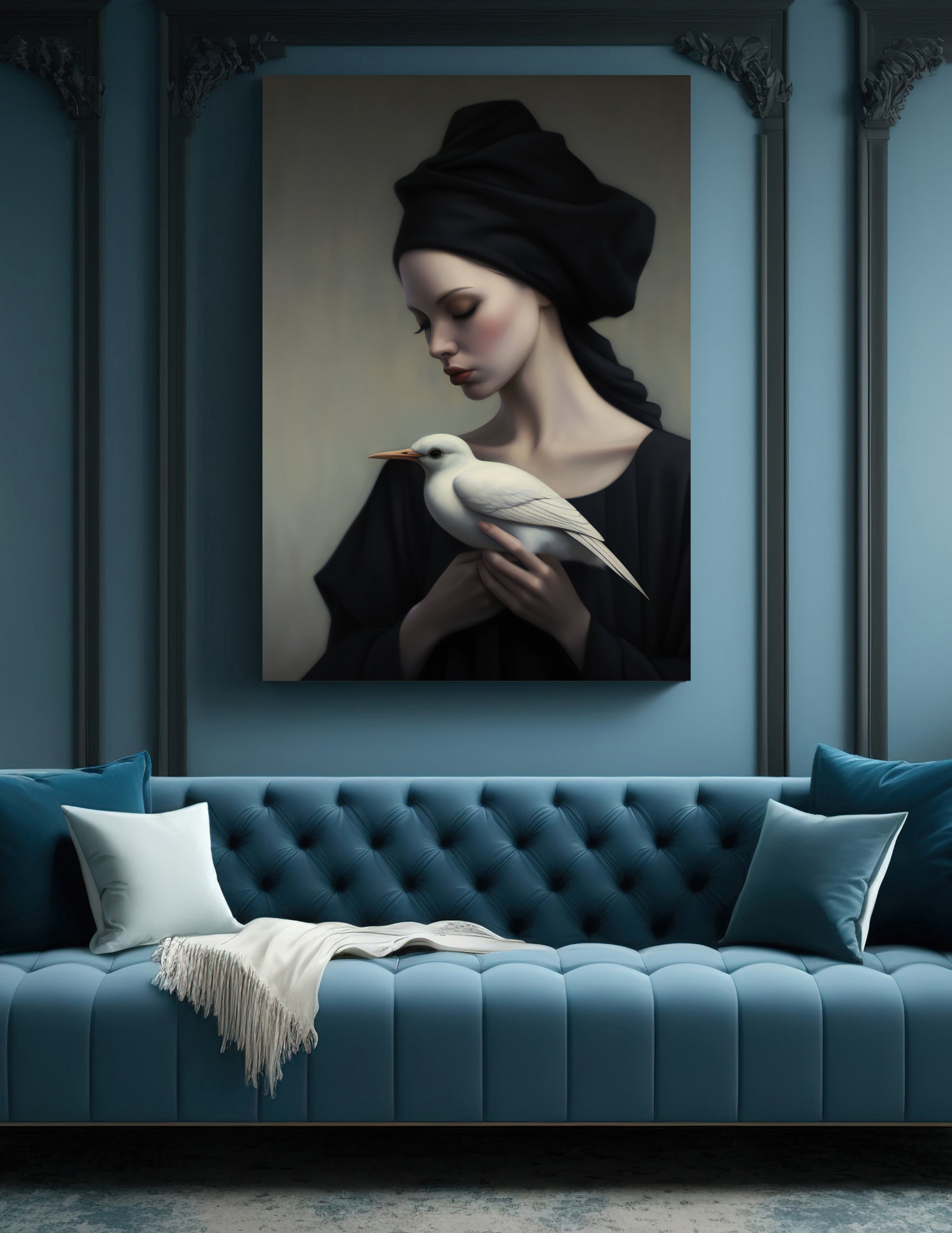 Dramatic portrait of woman with bird.