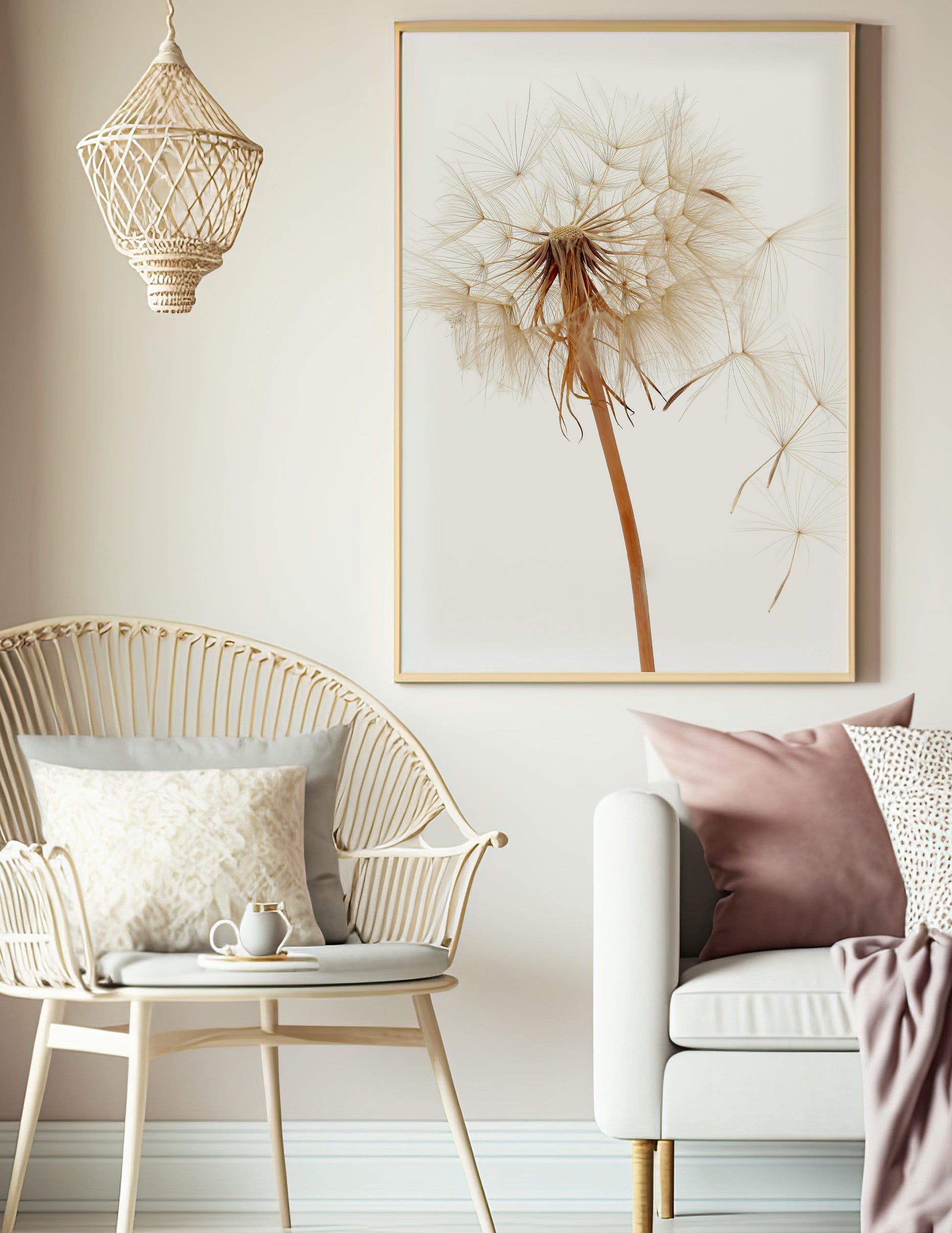 Soft warm tones of Dandelion on white background.