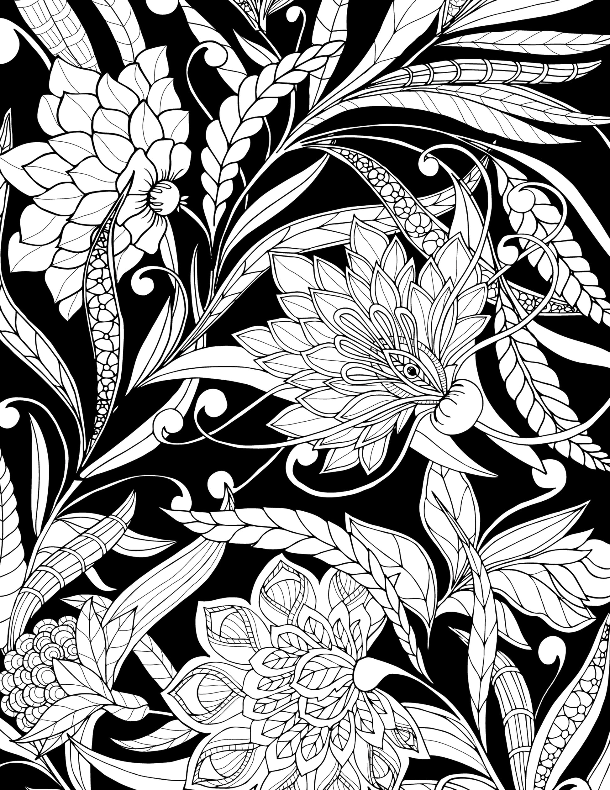 Stunning, simplistic line work of Hindi inspired florals in black in white.