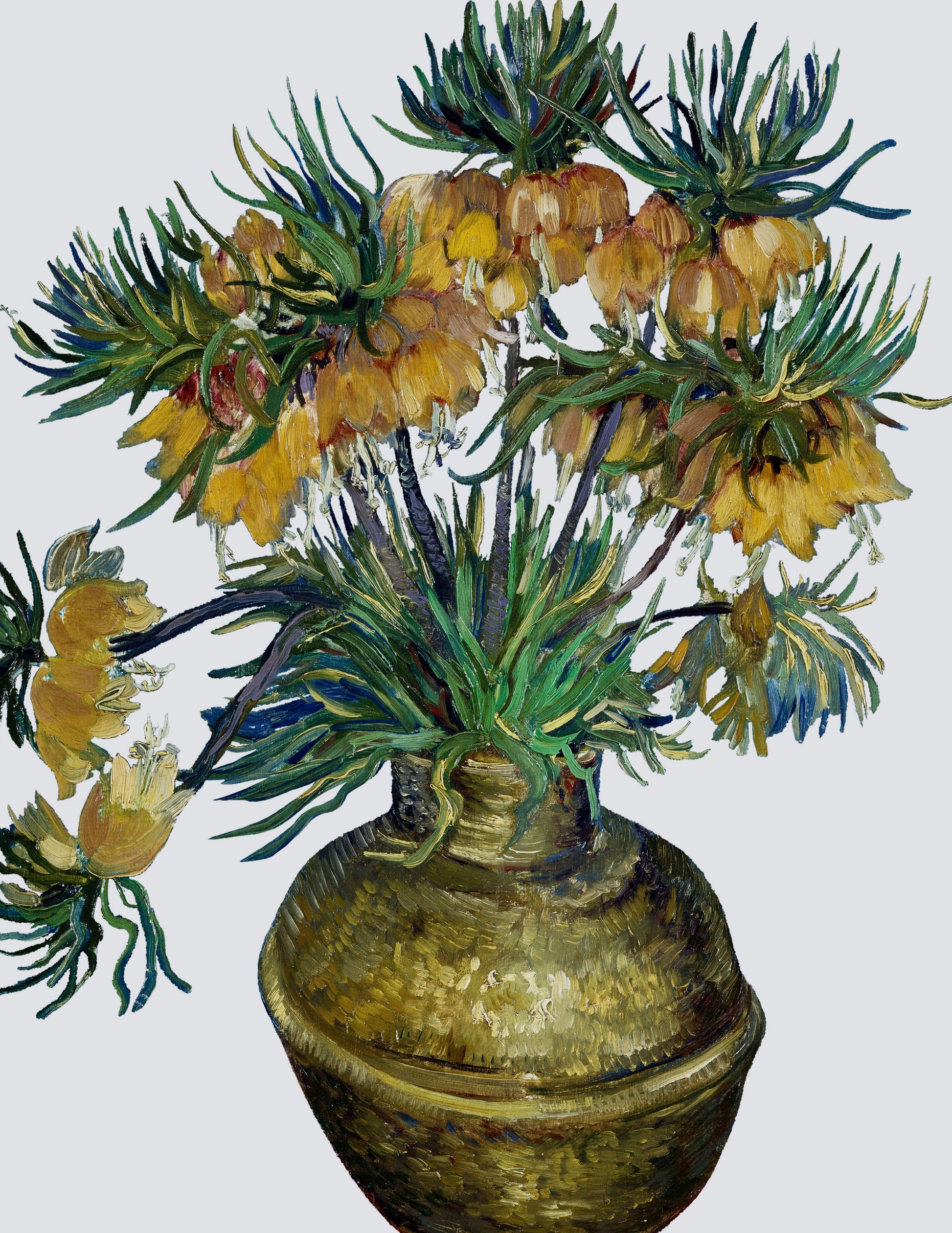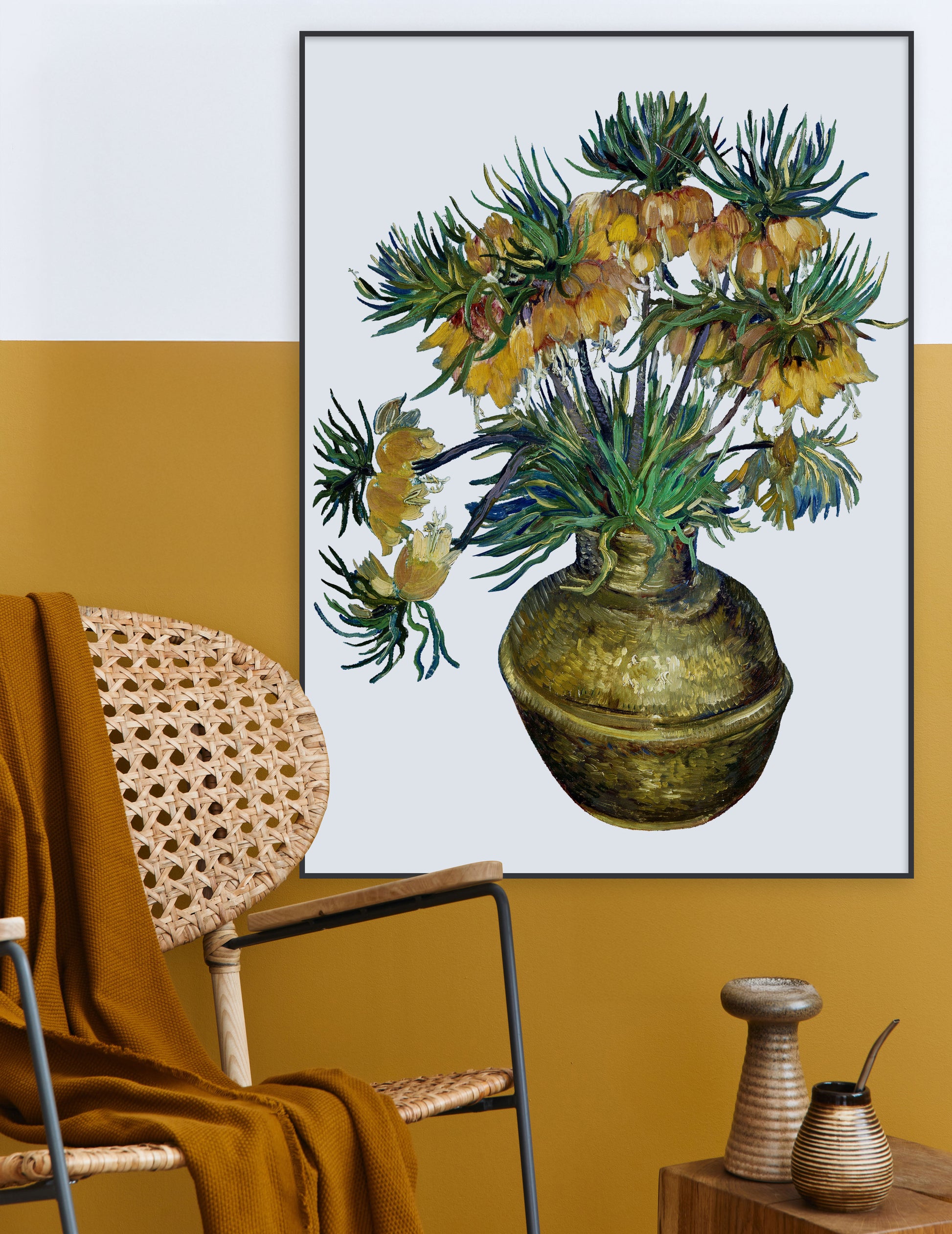 Vintage inspired still life art piece of florals in a vase, on a simplistic background