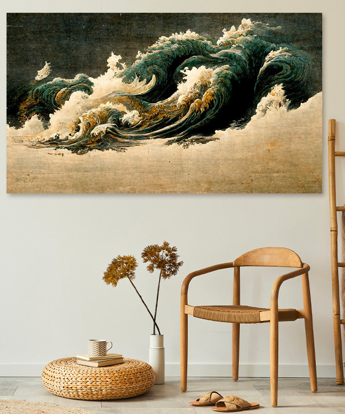 This Vintage Japanese inspired art print piece creates a dramatic focal point any interior, with warm soft tones.
