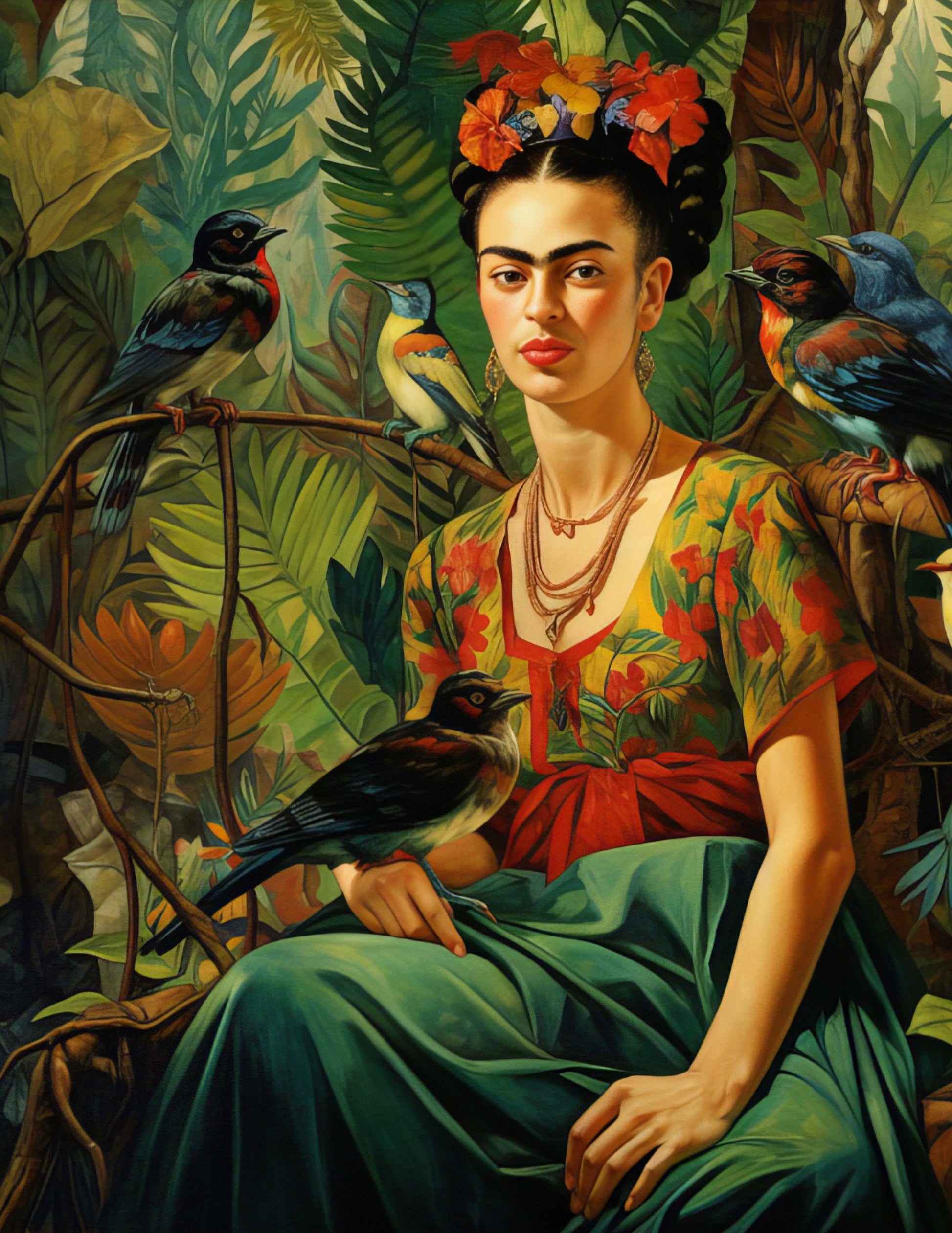 Vintage Jungle art piece in striking colour of Frida Kahlo.
