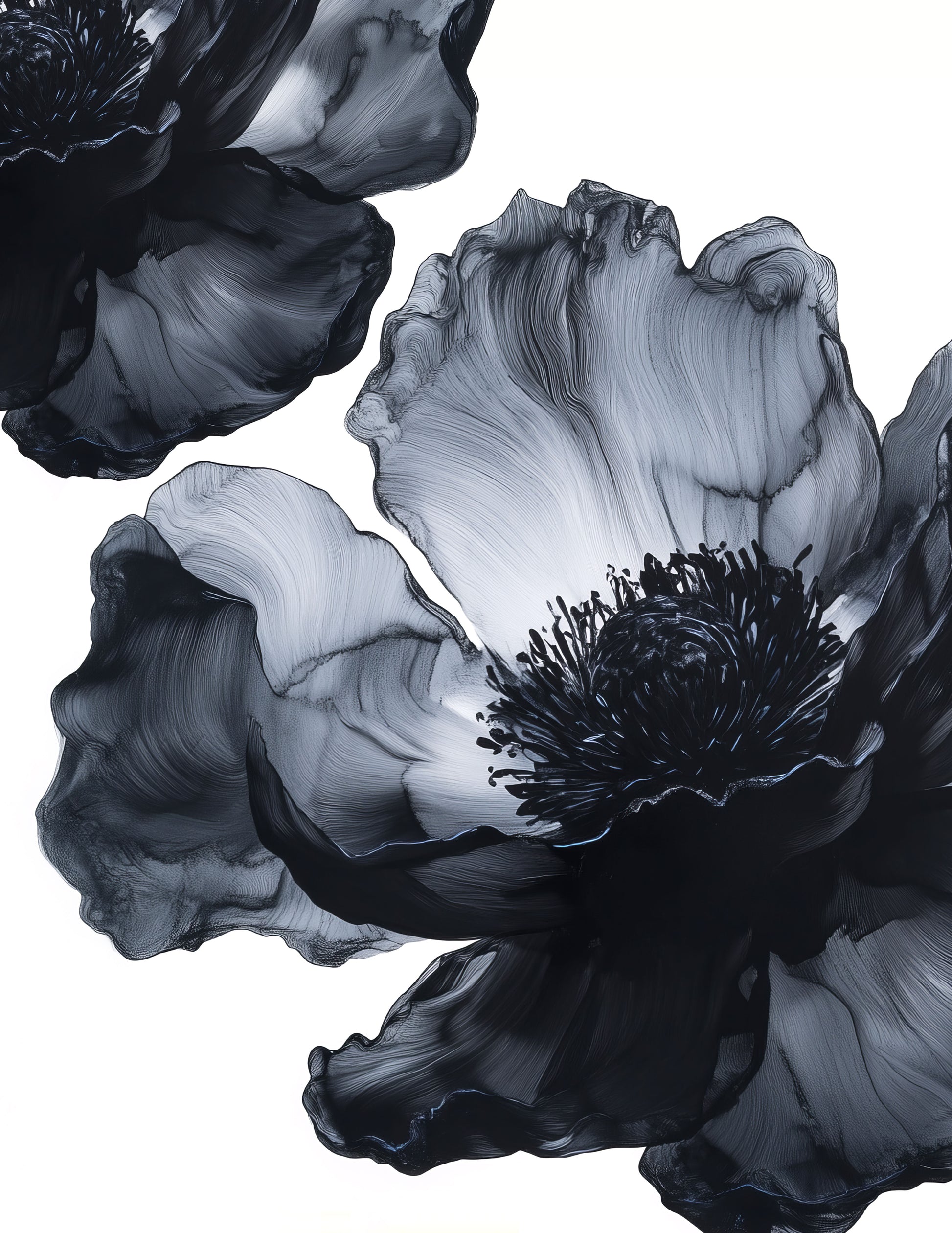 Simplistic monochromatic floral, striking floral art piece on stark background