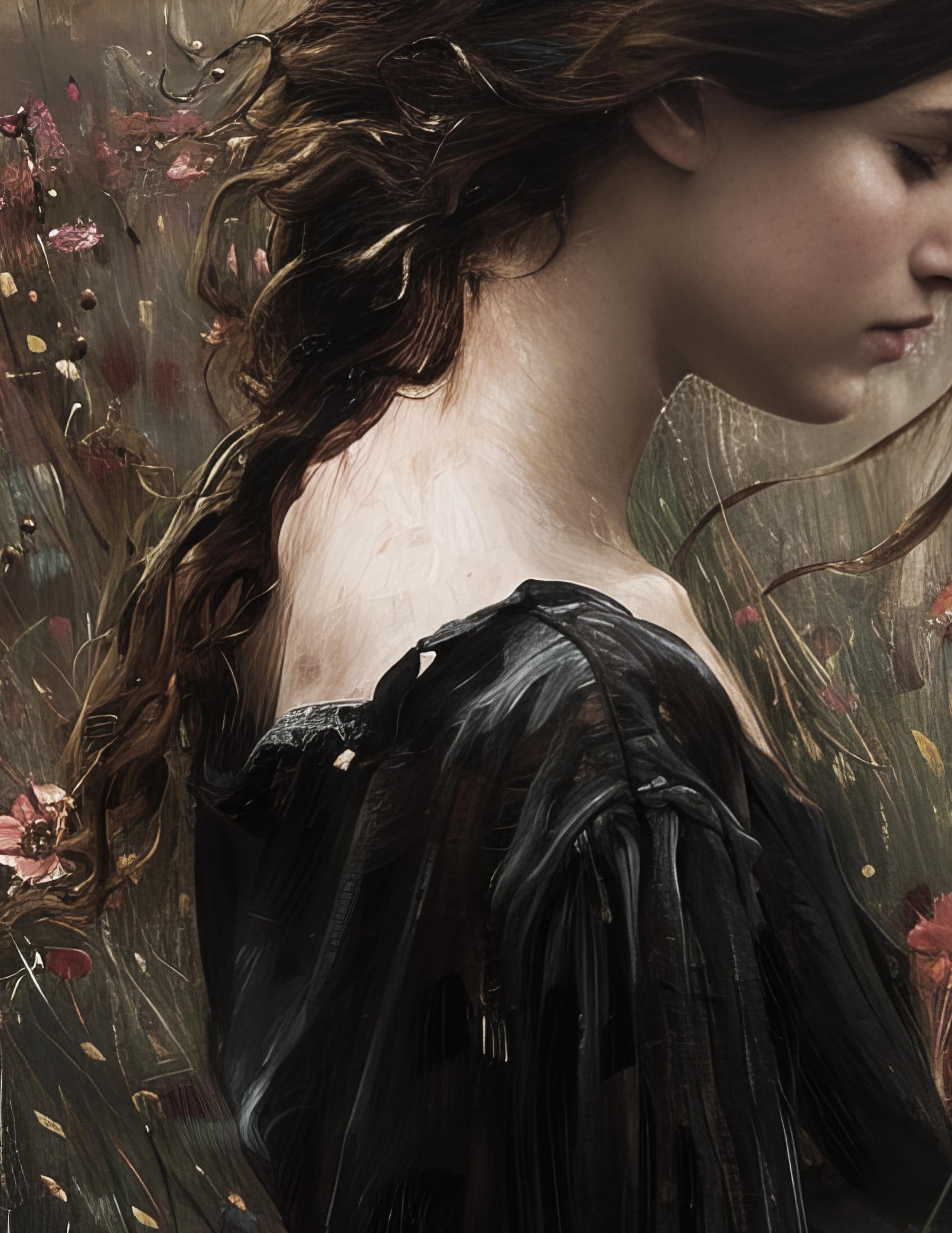 Add a touch of vintage romance to your interior with this dramatic set of 2 art pieces, woman in a floral field