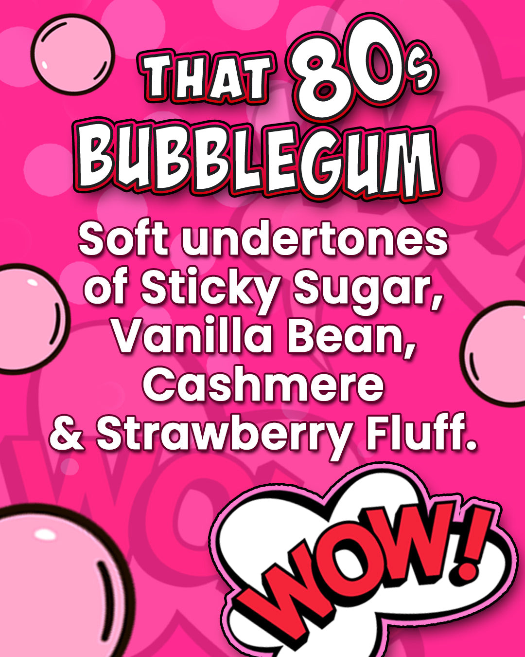 This vintage bubblegum fragranced candle becomes a vessel for time travel, taking you back to the sun-soaked days of youth, filled with laughter, ice-cream & the simple pleasure of blowing bubbles with pink bubblegum.