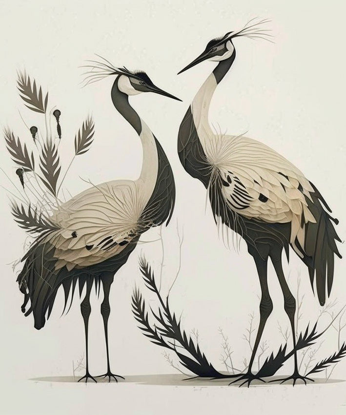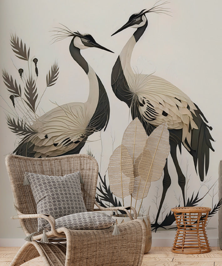 Mural of Striking Vintage Cranes. Available in a series of wall sizes.