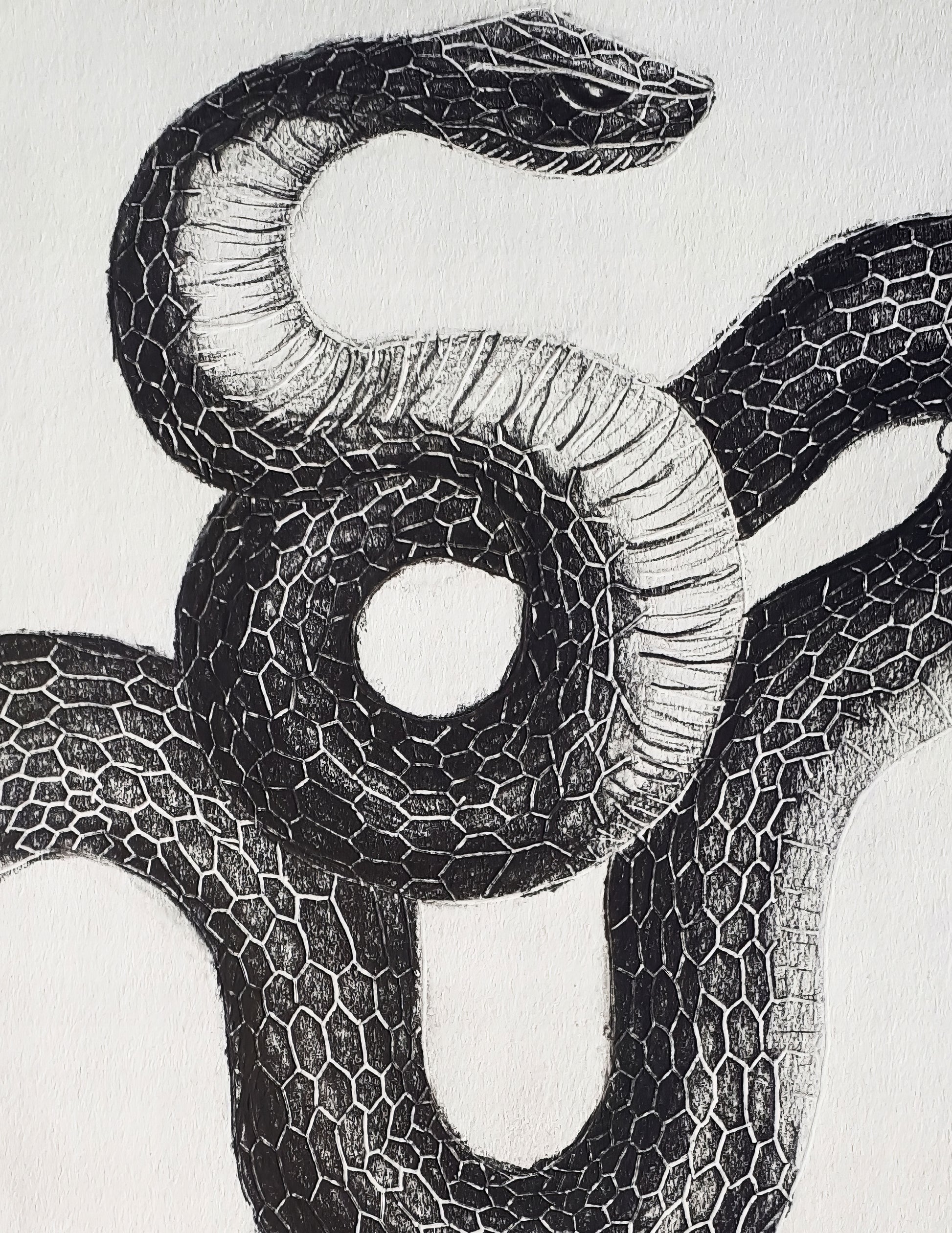 Strikingly simplistic, vintage inspired art piece of a snake.